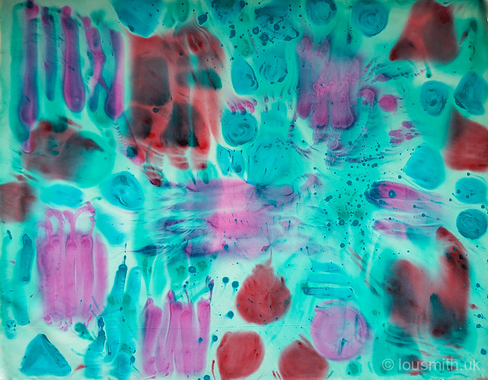 - Lou Smith, abstract painter, is open to experimenting with different mark-making techniques.